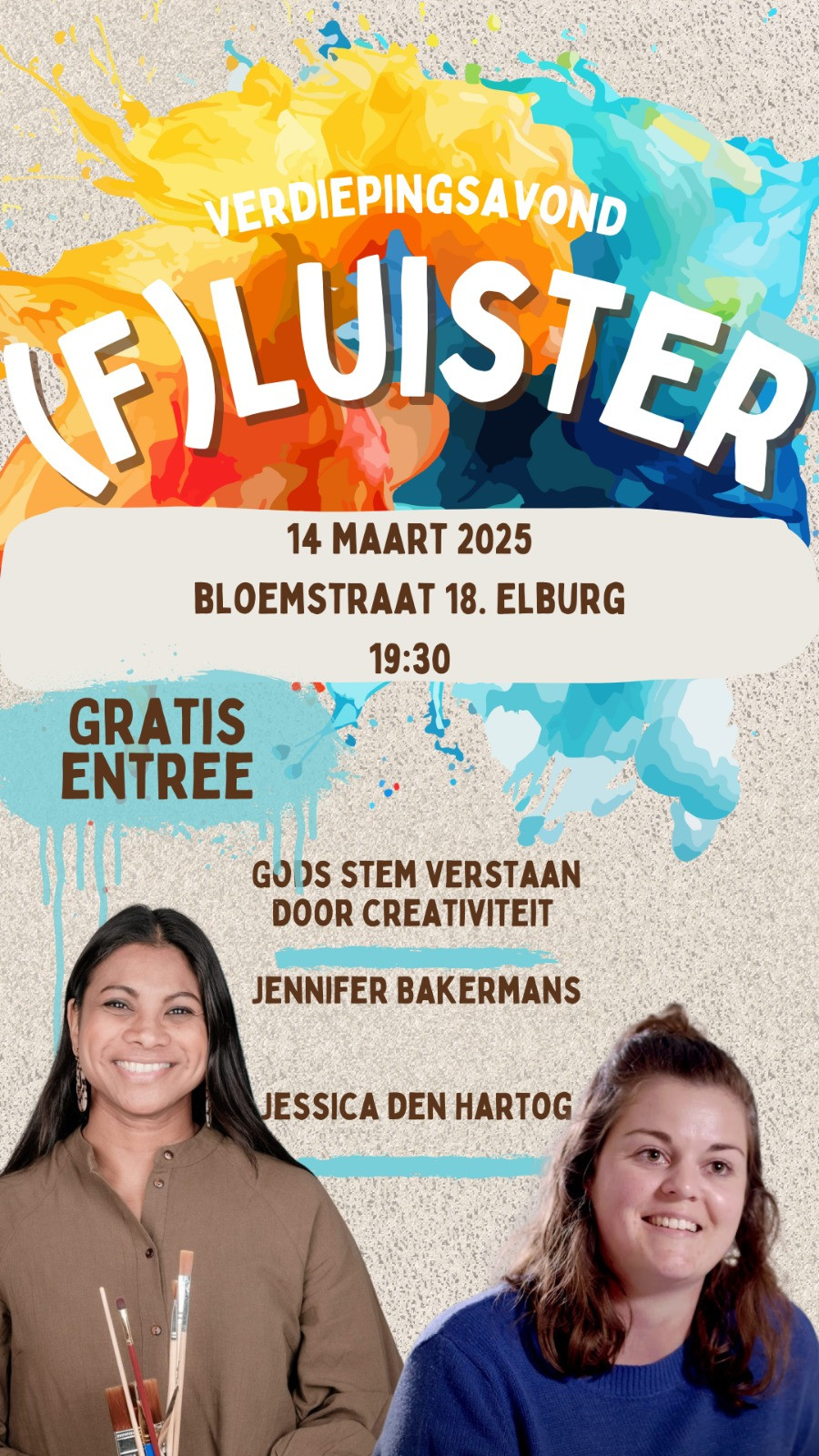 Op vrijdagavond 14 maart komen Jennifer Bakermans-Henkel en Jessica den Hartog naar Elburg, om meer te delen over het thema 'Gods stem verstaan - door creativiteit'! Zij zullen ons meenemen in dit onderwerp door middel van onderwijs, eigen verhalen en ervaringen, maar ook door samen praktisch aan de slag te gaan. Een geweldige en verdiepende uitdaging dus, waar iedereen van harte welkom is. We ontmoeten je graag!